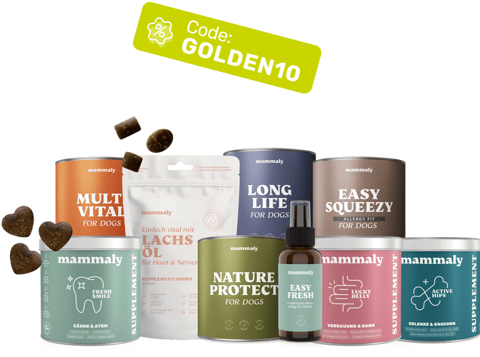 Jetzt zuschnappen und Monat für Monat profitieren: Auf dein Starterpaket gibt es 40% Rabatt und mit dem Code GOLDEN10 nochmal 10% oben drauf! Finde die richtigen Wirkstoffe für deinen Hund und spare jeden Monat!